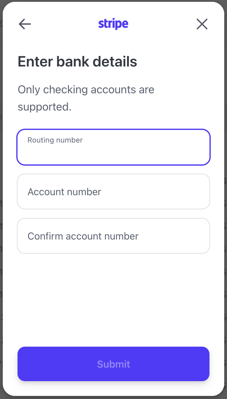 Once Stripe has verified your information, it’s time to link your bank account so you can get paid!